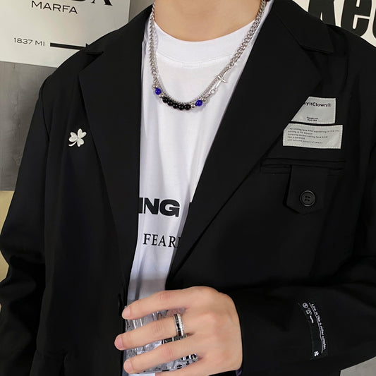 BLACK SQUARE DOUBLE CHAIN NECKLACE